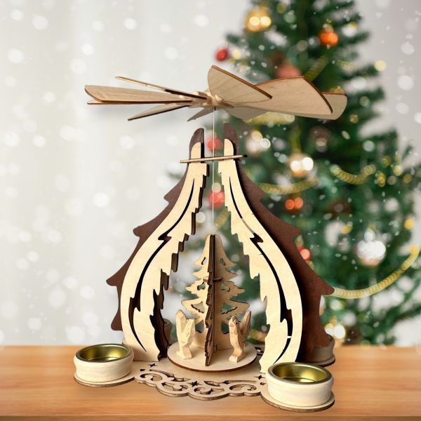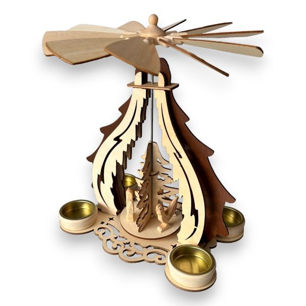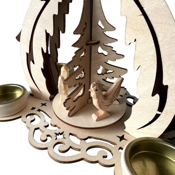 Produktinformationen "Holz Teelicht Pyramide mit Geflügel"