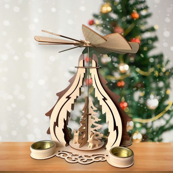 Produktinformationen "Holz Teelicht Pyramide mit Kaninchen"